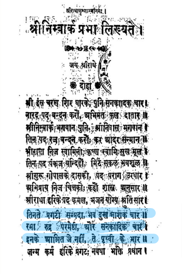 7. Hamsadāsa (Nimbārka Sampradāya) also mentions about four Sampradāya in his work Nimbārka Prabhā –